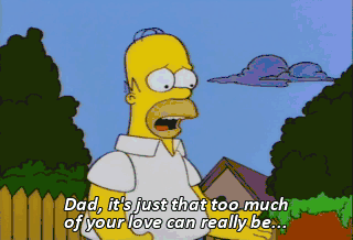 Dad, it's just that too much of your love can really be... scary.