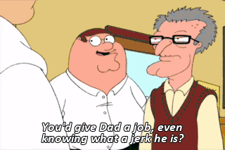 You'd give Dad a job, even knowing what a jerk he is? I have to. As you said, Peter, "I am the freakin' Pope." All right, get back!