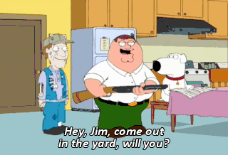 Don't ask me how he did it, but Jim Varney got the shotgun!