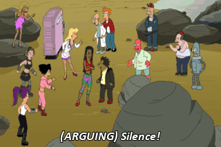 (ARGUING) Silence! Even a young pebble could see your race is divided based on the configuration of your 23rd chromosome. What? You mean along gender lines? Gender? Yeahs. You knows, guyses, galses, in that order. Ows!
