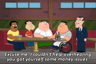 Excuse me, I couldn't help overhearing you got yourself some money issues.