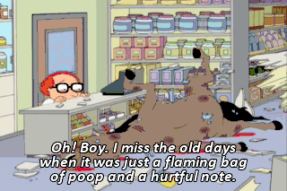 Oh! Boy. I miss the old days when it was just a flaming bag of poop and a hurtful note.