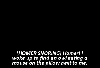(HOMER SNORING) Homer! I woke up to find an owl eating a mouse on the pillow next to me.