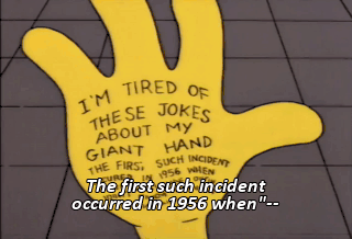 The first such incident occurred in 1956 when"-- Hi, Homer.