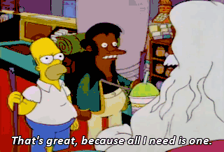 That's great, because all I need is one. Are you really the head of the Kwik-E-Mart? Yes. Really? Yes. You? Yes. I hope this has been enlightening for you. But I must-- Thank you. Come again.