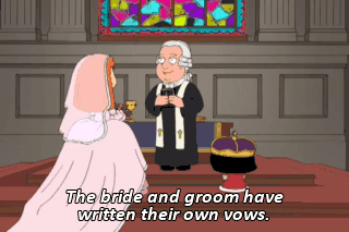 The bride and groom have written their own vows. Our love is like two figs hanging from a fig tree cradled by Cupid's own hand.