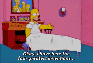 Okay. I have here the four greatest inventions... in the history of mankind. First, my all-purpose electric hammer, for all your pounding needs. Ow!
