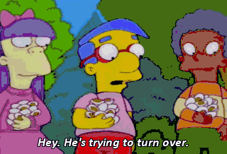 Hey. He's trying to turn over. i've never seen Bart so ashamed of me.