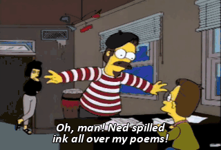 Oh, man! Ned spilled ink all over my poems! He's a real flat tire. I mean a cube, man. He's putting us on the train to Squaresville, Mona.