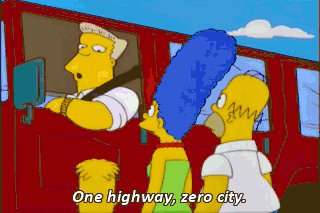 One highway, zero city. Ohh! Mm-hmm. Bart, your little tie makes me smile. Excuse me, but you don't sound as tough as you do in the movies. If you don't shut your big yap,
