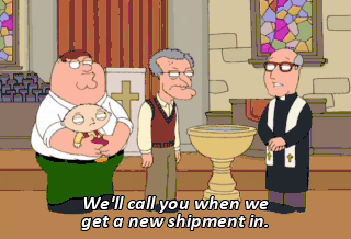 Stewie Griffin, I baptize you in the name of the Father, the Son and the Holy Ghost.