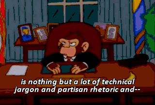 is nothing but a lot of technical jargon and partisan rhetoric and-- Get off me, Mr. President! That's what you get for not hailing to the chimp.