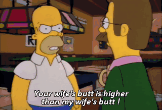 Your wife's butt is higher than my wife's butt ! You make me sick ! Simpson, I'm afraid I'm gonna have to ask you to leave. I hope you understand. I wouldn't stay on a bet ! One for the road.