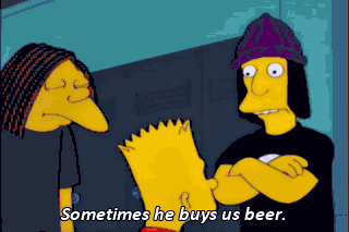 Sometimes he buys us beer. I thought Kearney was dating your mom. Hey, she came on to me. Get him! Ow!