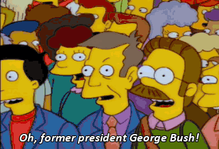 Oh, former president George Bush! Okay, let's give it up for the new guy! Now, let's all turn around and pay attention to me again. Hello. Hello! Hello!