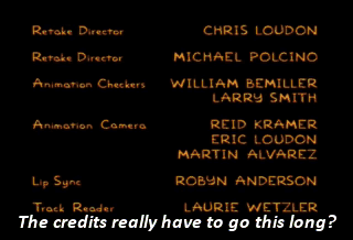 The credits really have to go this long? Oh, shush yourself. English - US - Line 21
