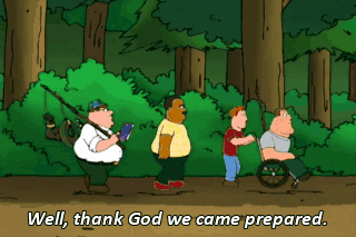 Well, thank God we came prepared. We brought enough food to last us... Holy crap, Chris! What the hell? I put you in charge of the food. The raccoons were here. See?