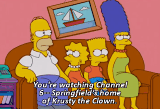 You're watching Channel 6-- Springfield's home of Krusty the Clown. Now on three times a day.
