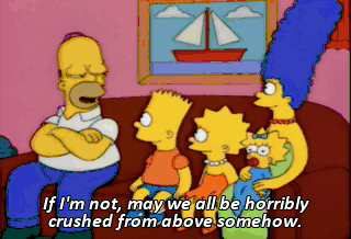 If I'm not, may we all be horribly crushed from above somehow. Okay, if you're that worried about it, let's go down to the bomb shelter. We have a bomb shelter? Homer Simpson takes care of his family.