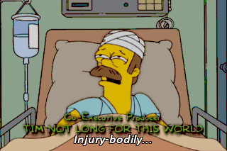 Injury-bodily... Ned, you nearly died of a brain tumor. Thank goodness that bowling ball knocked it out of your head! (CHUCKLES) Welcome back, dawg. (SCREAMS)