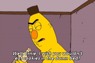 Well, Ernie, I wish you wouldn't eat cookies in the damn bed!