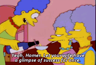 Yeah, Homer. Let your wife have a glimpse of success for once. All right. That's the last straw! Time to take out the trash! But first I'm going to have to ask you to leave.