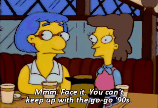 Mmm. Face it. You can't keep up with the go-go '90s. Well, Marge. You're about as popular as rug burn. All in favor of expelling Marge from the investorettes-- Aye.