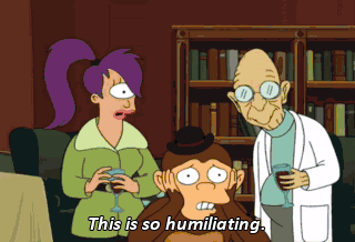 This is so humiliating. Now, these monkeys I like. What's that? You want to come out? No! Stop!