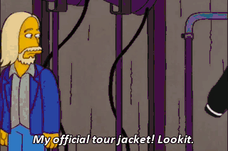 My official tour jacket! Lookit. Wait. You misspelled "guitar hero." Look, sorry ifthere's been a misunderstanding, Homer. We reallyjust need you to tap the mikes and say, "Test, test."