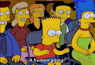 A human going! Bart, be quiet. Son, that's wonderful. Come here. Come up here. What made you yell out that remark? I don't know. You just wanted to express yourself, yes?