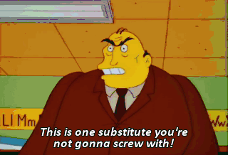 This is one substitute you're not gonna screw with! Marge Simpson. Hello, class! Hi, Bart. Over here, sweetie. It's me, Mom. Hi. Hey! Hello!