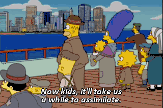 Now kids, it'll take us a while to assimilate. I'll start out as a cop, and with time, become a dirty cop. I think I'm going to like this America. Everywhere around the world They're coming to America