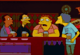 You got that straight, Barn. To Marge! Moe, what do you recommend for severe depression? Booze, booze and more booze. Huh. Nothin' like a depressant to chase the blues away.