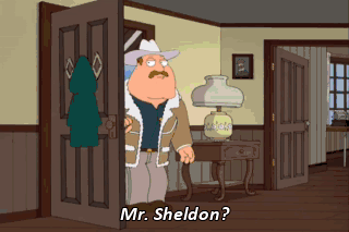 Mr. Sheldon? Oh, my God! I'm saved! Let's get out of here before Stewie gets back. (SCREAMING) My legs! Now I'm gonna have to spend the rest of my life in a wheelchair.