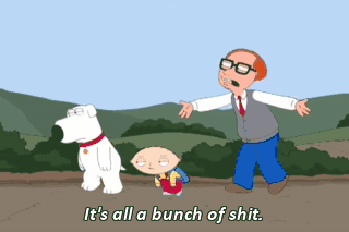 It's all a bunch of shit. It's all a bunch of goddamn shit. Okay, take it easy, man. No, fuck you, Stewie.