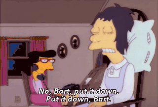 No, Bart, put it down. Put it down, Bart. Bart, put it down. Oh! No all-you-can-eat seafood. I wore my extra-loose pants for nothing. Nothing! Maybe Laura could watch us.