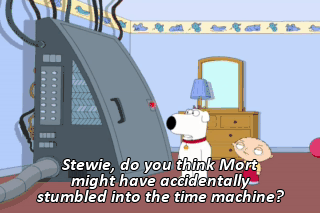Stewie, do you think Mort might have accidentally stumbled into the time machine? Well, I suppose it's possible.