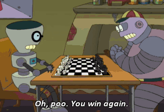 Oh, poo. You win again. Oh-oh! Nerds. Allow me to introduce myself. I'm Gearshift, chapter president. This is Oily, and this here is Fat-bot. You're all losers. My name's Bender.