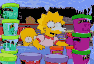 Naw. Nothin' made of dead guys. What's in the back? Hurry up. My hands are getting cold. Ah-choo! Oh, my goodness! - Homer, get her out of there. - Aw! "Sherbert Hoover"?