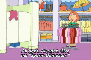 All right. All right. Give me "Sperm Dumpster." That's the spirit. - You finding everything okay? - Yes, thank you.