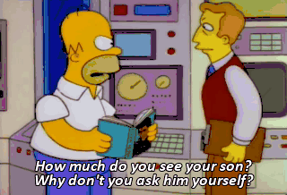 How much do you see your son? Why don't you ask him yourself? Homer, meet Dave, jr. Huh? How's your research, son?
