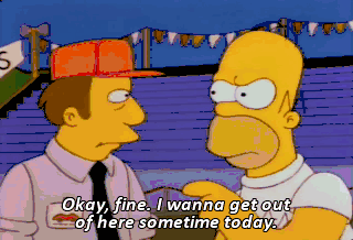 Okay, fine. I wanna get out of here sometime today. Attention, everyone. To those questioning the value of the space program... behold! Ay, caramba! Hey you can't smoke in the pit area. Fine.