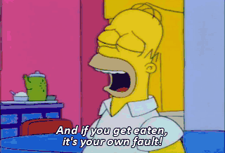 And if you get eaten, it's your own fault! Ow! Oh! Oh! My-- Oh, to hell with it.