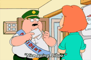 "Nice going, Libya." "You da man, North Korea." "Great job, Iraq."