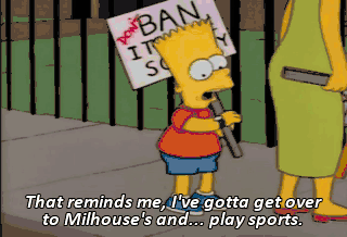 That reminds me, I've gotta get over to Milhouse's and... play sports. All right. And I'm going over to janey's again. We're gonna be, um, making the most of our childhood years. Have fun. We will.