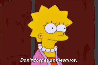 Don't forget applesauce. Yeah. I suppose you could grind some pills into it. Aw.