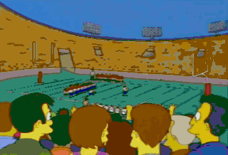 Dear Lord, look at that blimp! He's hanging from a balloon! Marge, uh, can we not land here?