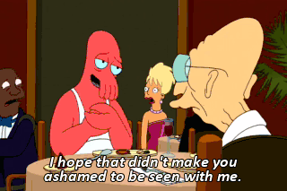 I hope that didn't make you ashamed to be seen with me. No, it only makes you more attractive. (PEOPLE GASPING) Ew!