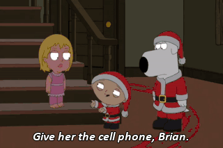 Give her the cell phone, Brian. (SIGHS) There you go. Merry Christmas! Yeah. Merry Christmas. It has all my fucking contacts in it.