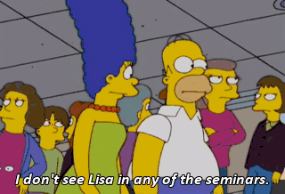I don't see Lisa in any of the seminars. And I'm growing ashamed of my penis. (GASPS) Homer, look!